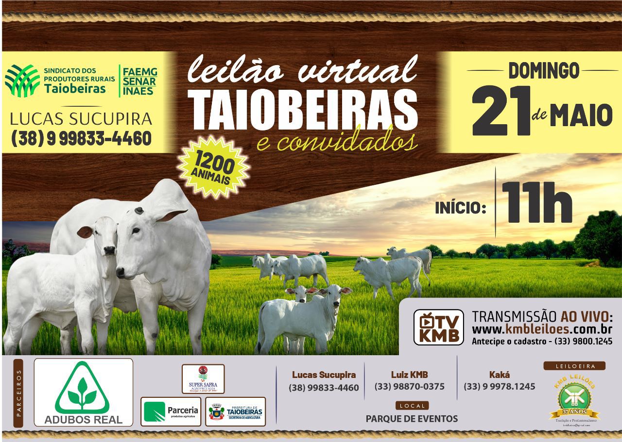 O município de Taiobeiras recebe o 1º Leilão do Sindicato dos Produtores Rurais neste domingo (21), a partir das 11h, na sede da entidade. Haverá transmissão pelo site www.kmbleiloes.com.br, onde será possível participar do “Leilão Virtual”, com mais de 1.500 cabeças de bezerros e bezerras de recria. O Sindicato tem a expectativa de atingir R$ 5 milhões em vendas.
