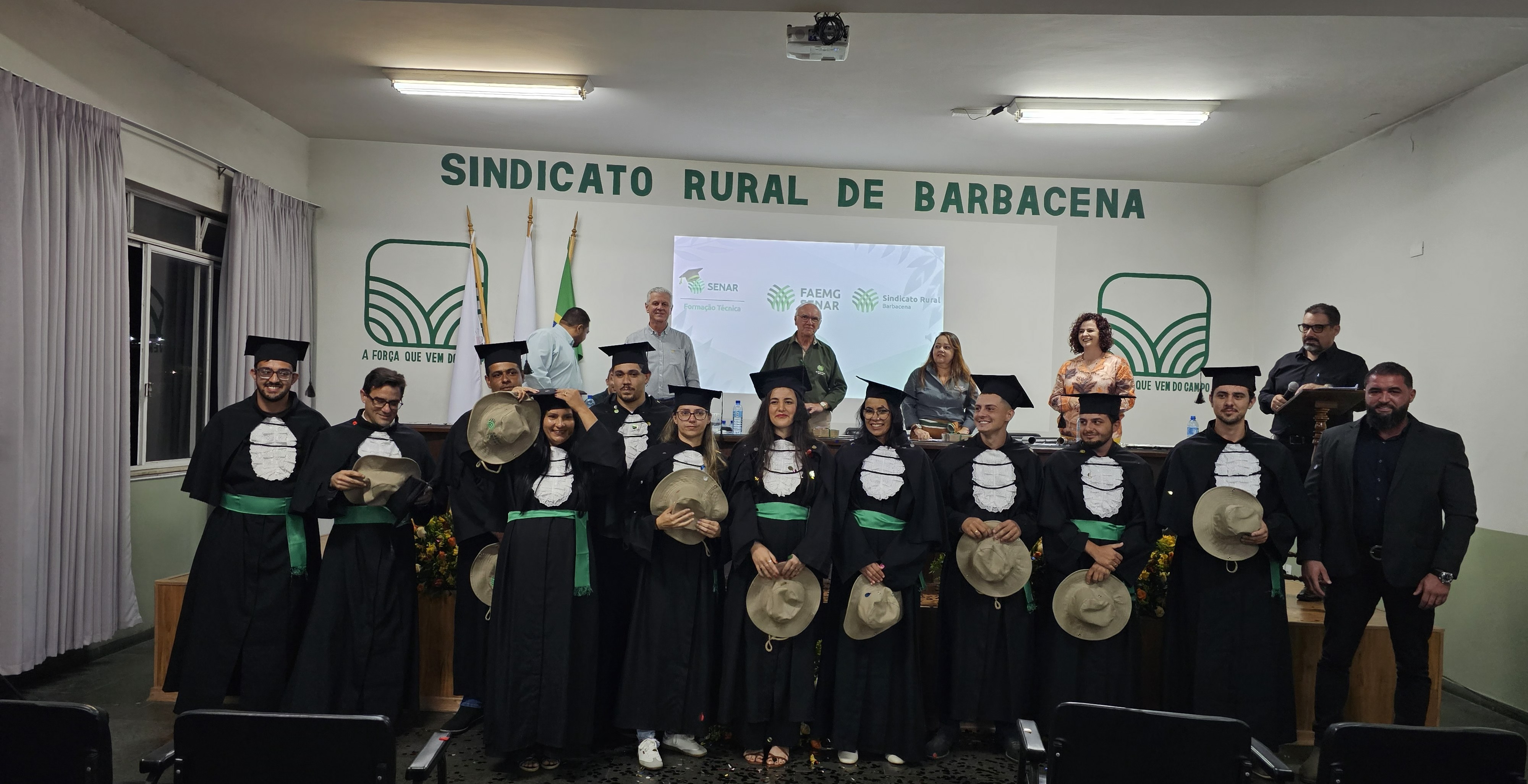 O Sindicato Rural de Barbacena realizou a solenidade de formatura da 3ª turma dos cursos técnicos do Sistema Faemg Senar em parceria com a Rede e-Tec na sexta-feira, 24 de abril. Dezesseis alunos concluíram o curso de técnico em Zootecnia e estão aptos para atuarem no mercado de trabalho rural.