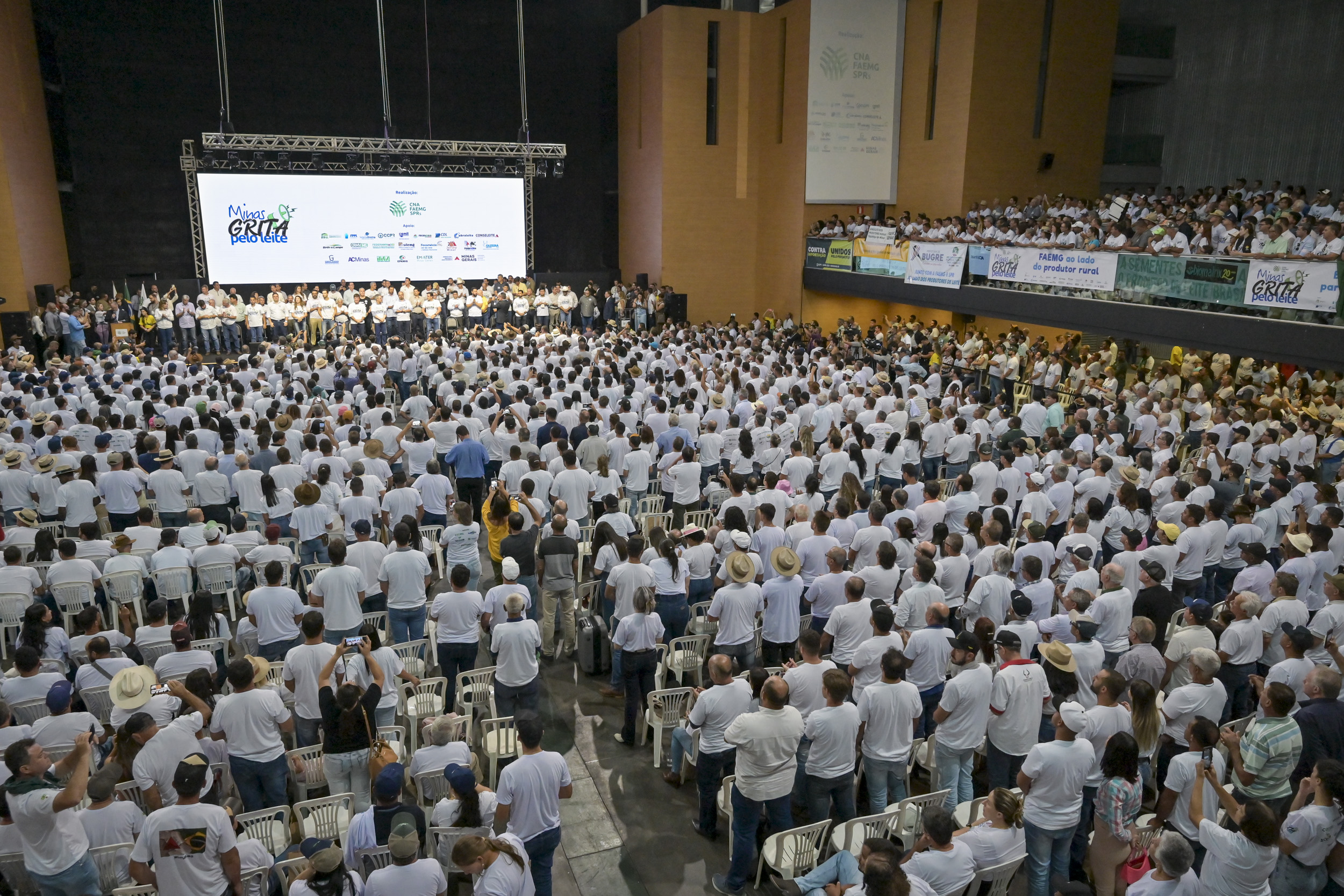 Mais de 7.000 produtores de leite se reuniram para reivindicar o fim das importações de leite em pó do Mercosul e exigir medidas emergenciais para salvaguardar o segmento leiteiro de Minas Gerais e do Brasil. O movimento ocorreu em março de 2024, no Expominas, em Belo Horizonte, e contou com o apoio da CNA, sindicatos rurais, cooperativas e mais de 80 autoridades dos poderes Executivo e Legislativo.
