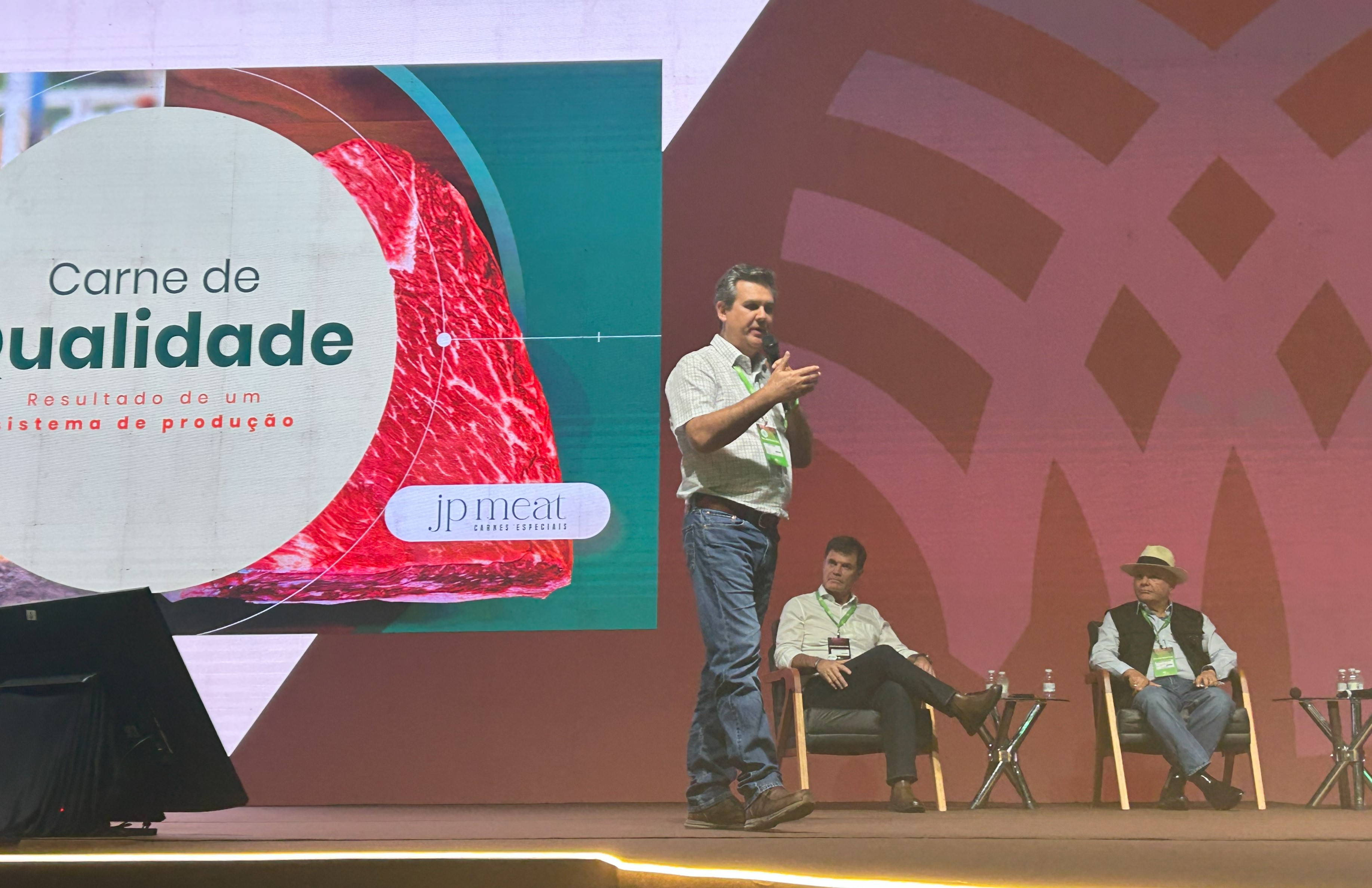 José Leandro Peres apresentou sua trajetória no Mato Grosso, onde transformou uma fazenda degradada em referência de integração lavoura-pecuária e confinamento estratégico. Com dados e gestão, reduziu a idade de abate, aumentou a produtividade e criou uma marca própria de carne. “A qualidade só aparece quando assumimos o ciclo completo, do bezerro ao corte, com técnica e planejamento. Entregamos ao consumidor uma experiência, que carrega toda a nossa história”, concluiu.