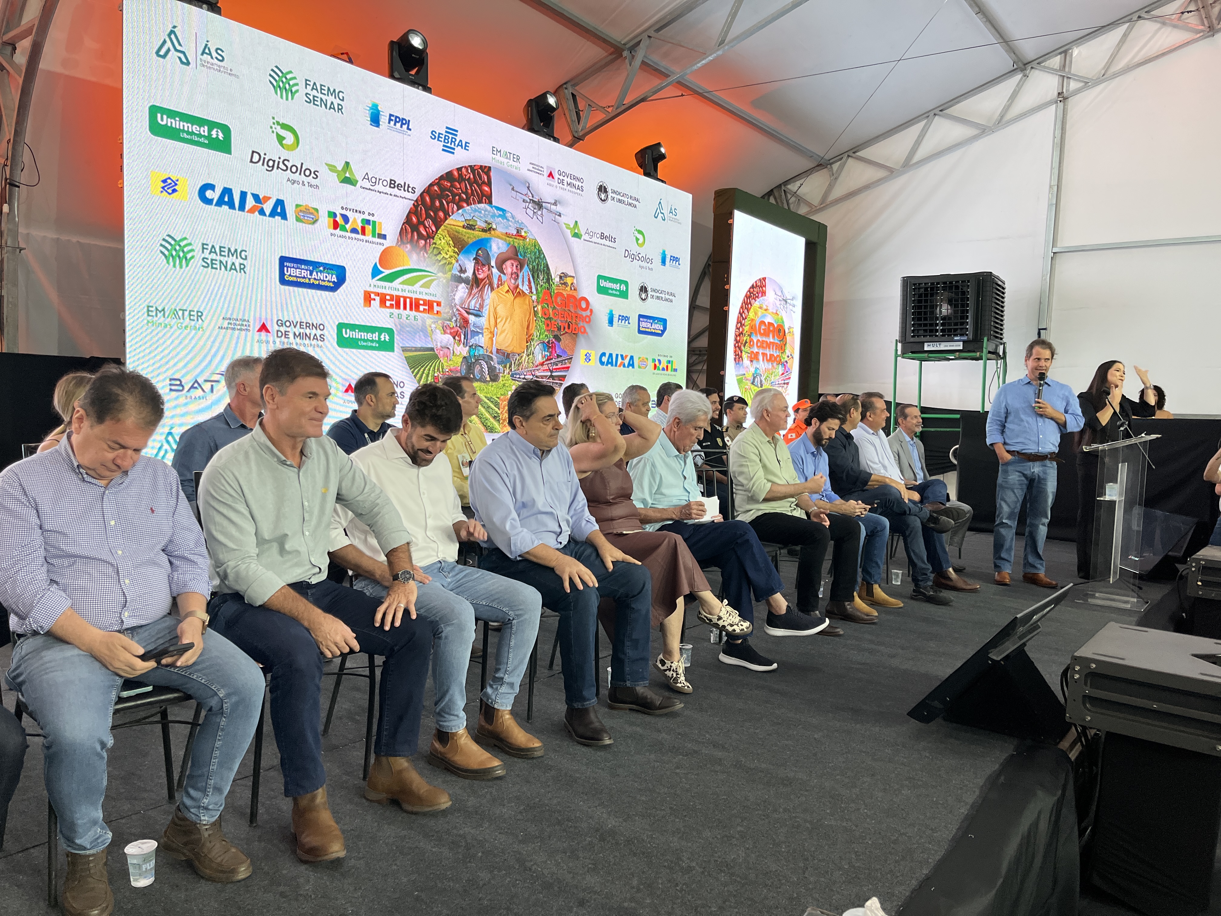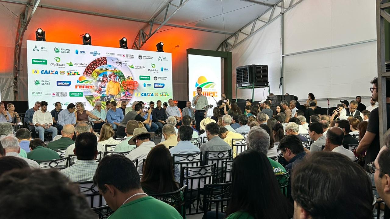 Com mais de 370 expositores, a edição de 2026 consolida a Feira do Agronegócio Mineiro – Femec como uma das maiores do agronegócio do país. A abertura reuniu autoridades políticas, lideranças do setor e produtores rurais nesta segunda-feira (23), em Uberlândia, no Triângulo Mineiro. Promovida pelo Sindicato Rural do município, a Femec se destaca pela apresentação de máquinas, equipamentos, implementos e insumos agrícolas. O Projeto “Cinturão Antigreening” foi lançado durante a reunião do Núcleo dos Sindicatos dos Produtores Rurais do Triângulo Mineiro e Alto Paranaíba, dentro da programação do evento.